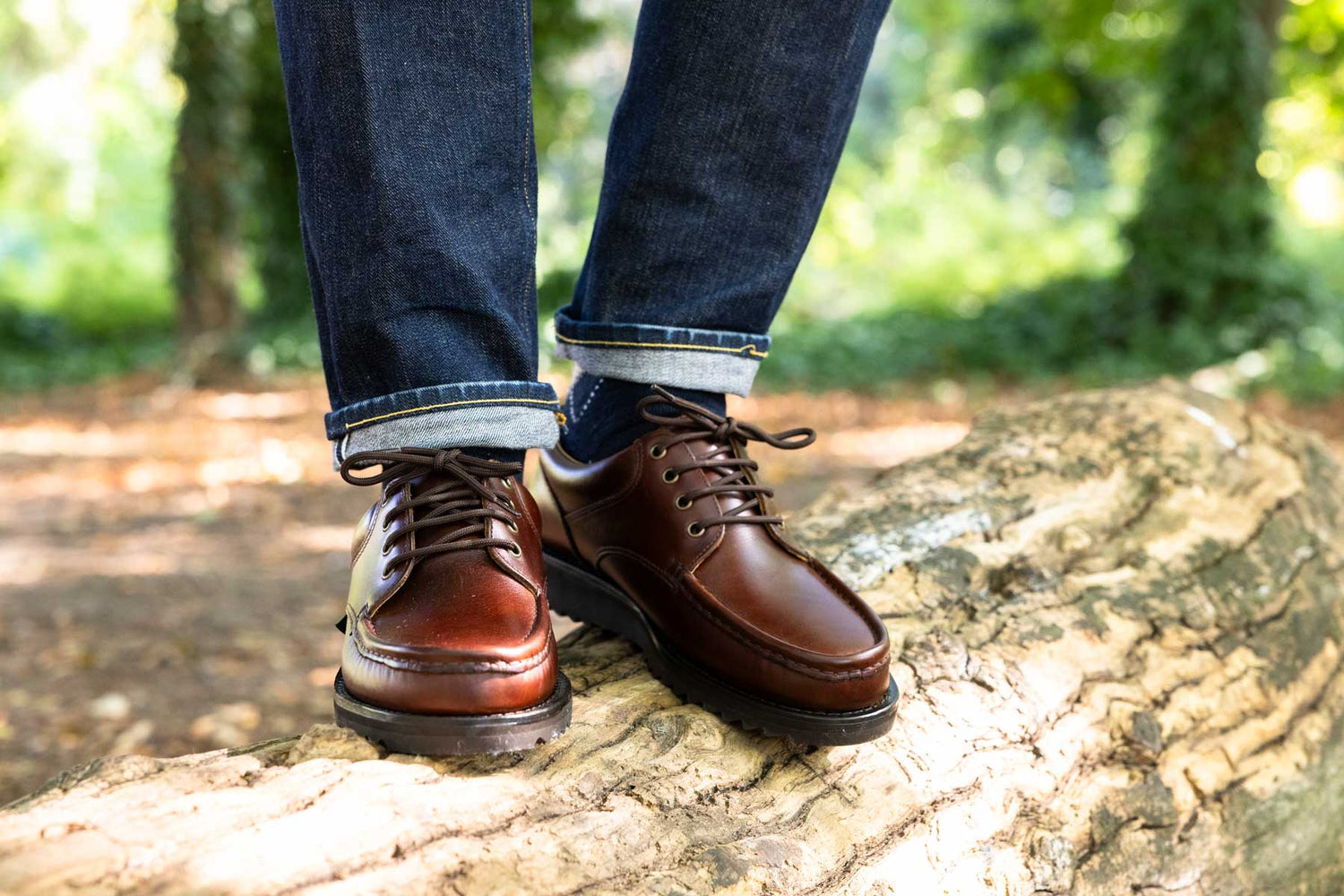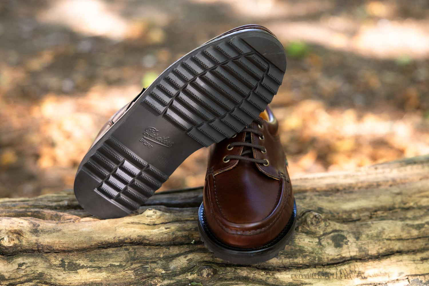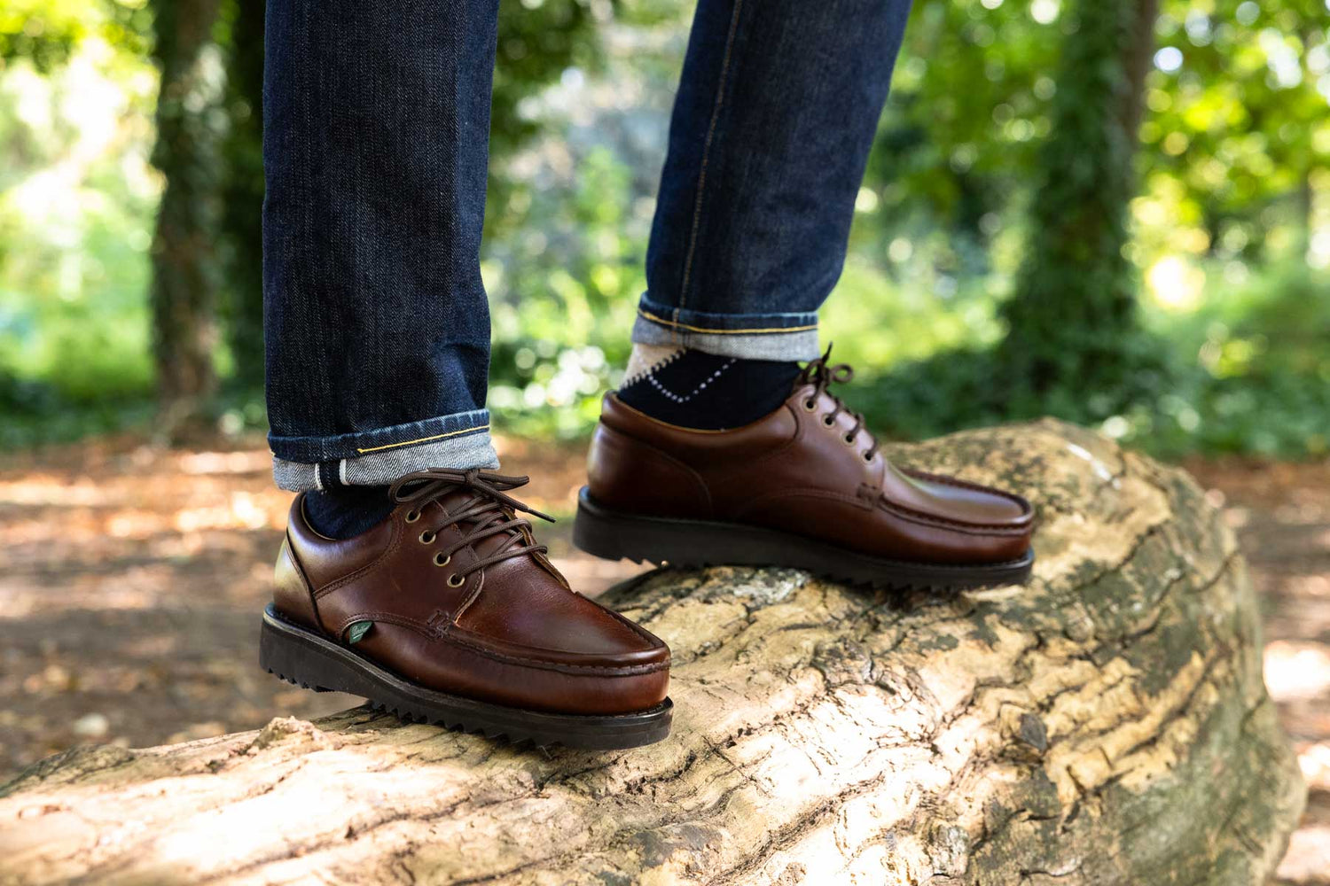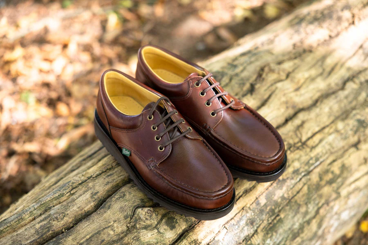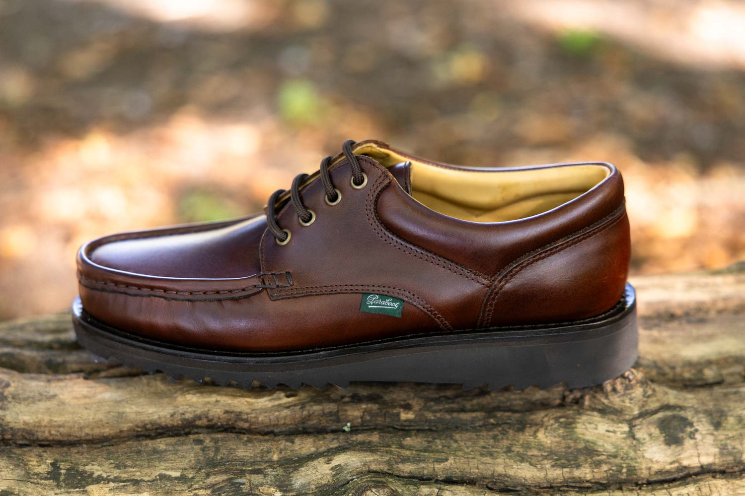 Bateau en cuir marron semelle gomme cousue